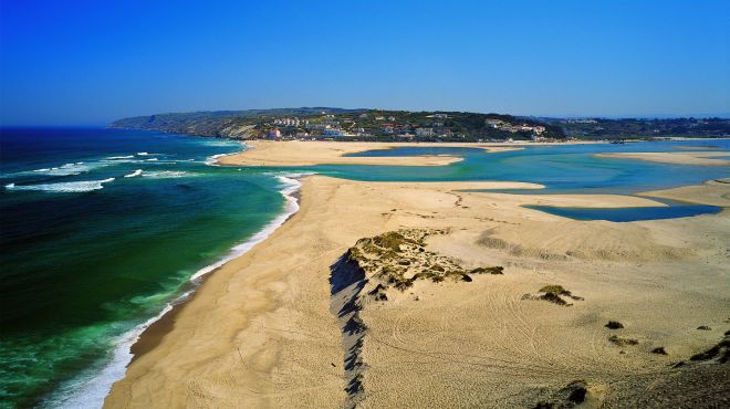 Qui l’oceano incontra la Lagoa de Óbidos, creando un contrasto unico: